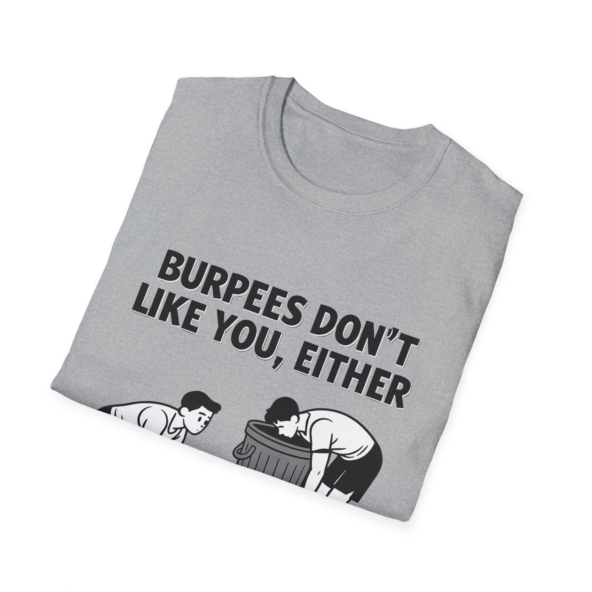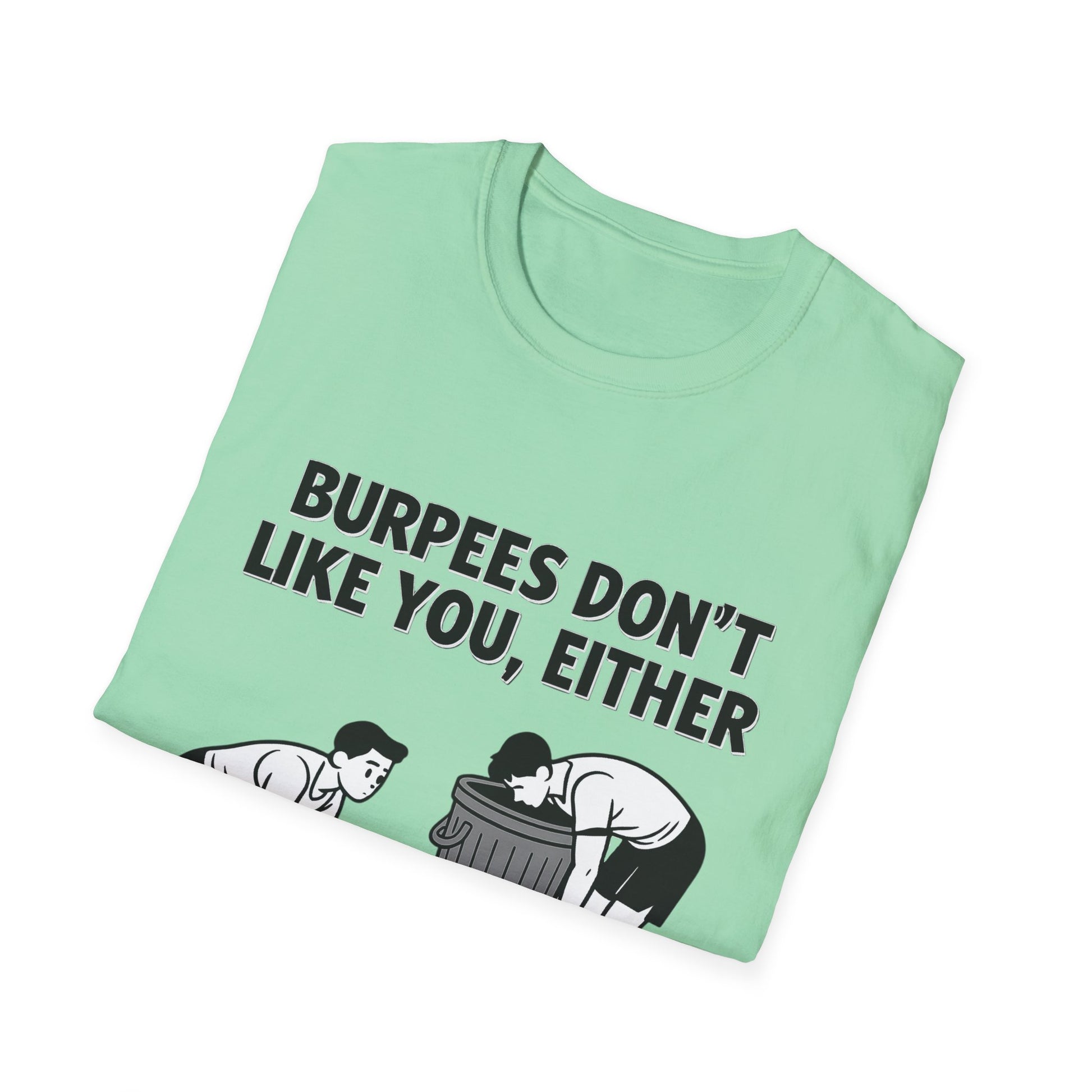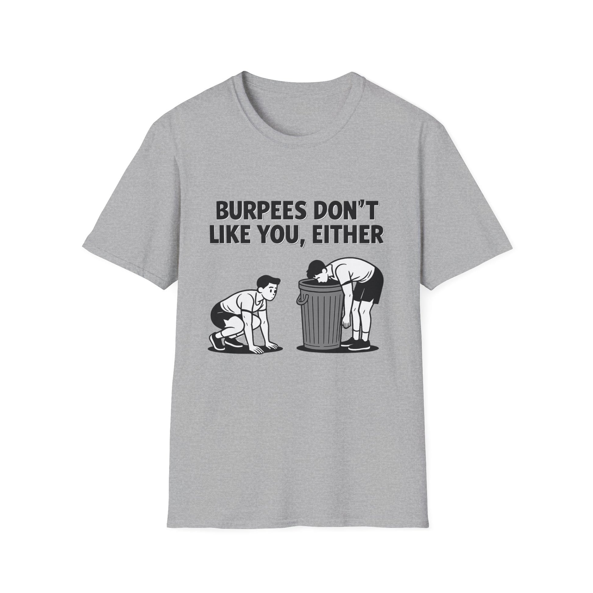 Funny Burpees Don't Like You Either Unisex Softstyle T-Shirt, Workout Tee, Gym Shirt, Fitness Apparel, Exercise Top